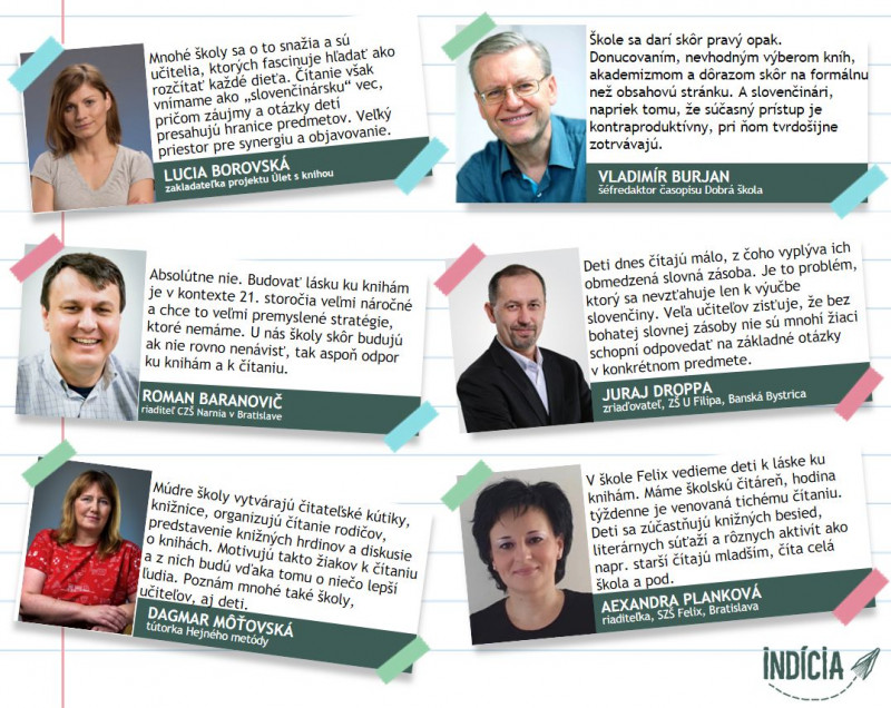 Lucia Borovská, zakladateľka projektu Úlet s knihou: Mnohé školy sa o to snažia a sú učitelia, ktorých fascinuje hľadať, ako rozčítať každé dieťa. Čítanie však vnímame ako „slovenčinársku“ vec, pričom záujmy a otázky detí presahujú hranice predmetov. Veľký priestor pre synergiu a objavovanie.