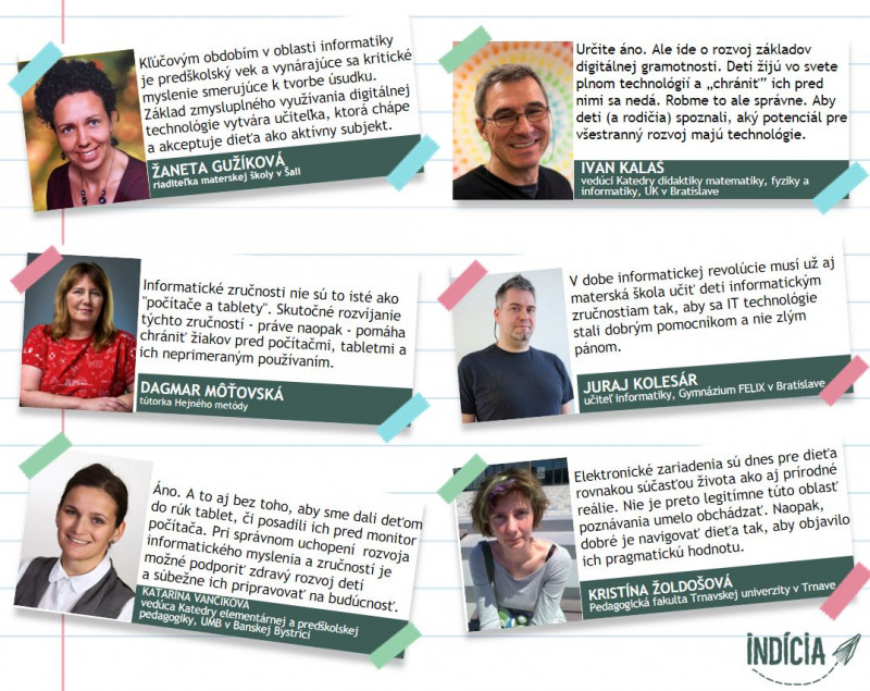 Katarína Vančíková, vedúca Katedry elementárnej a predškolskej pedagogiky, UMB v Banskej Bystrici: Áno. A to aj bez toho, aby sme dali deťom do rúk tablet, či posadili ich pred monitor počítača. Pri správnom uchopení rozvoja informatického myslenia a zručností je možné podporiť zdravý rozvoj detí a súbežne ich pripravovať na budúcnosť.