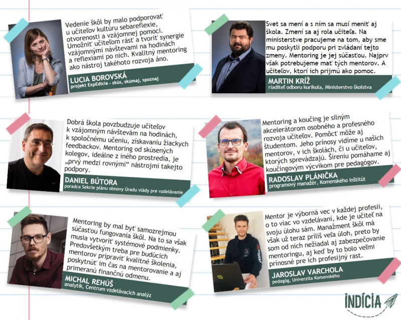 Lucia Borovská, manažérka projektu ExpEdícia: Vedenie škôl by malo podporovať u učiteľov kultúru sebareflexie, otvorenosti a vzájomnej pomoci. Umožniť učiteľom rásť a tvoriť synergie vzájomnými návštevami na hodinách a reflexiami po nich. Kvalitný mentoring ako nástroj takéhoto rozvoja áno.