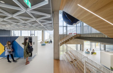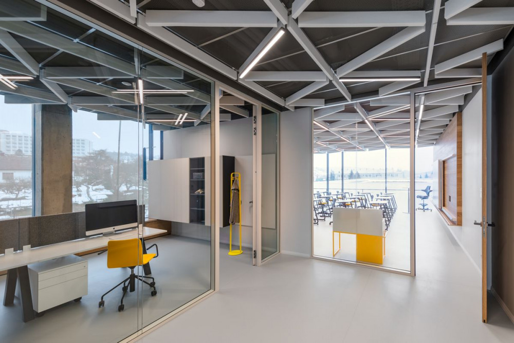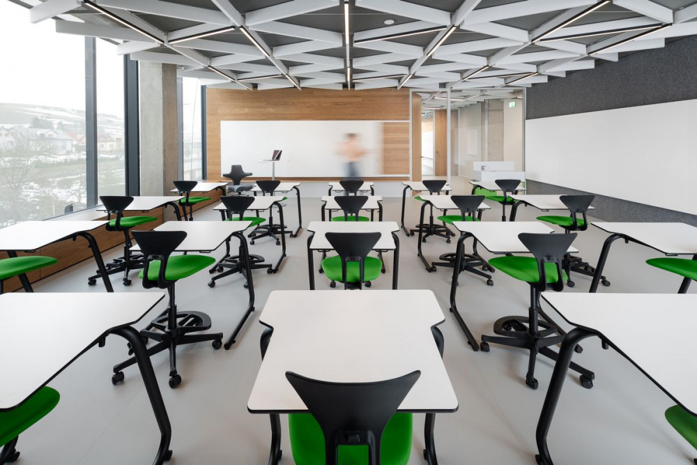 Je ťažké vypichnúť jeden dôležitý bod. Pri vytváraní koncepcie dbáme na to, aby priestory vytvárali jednotné dielo. Ale pre mňa sú dušou tej školy otvorené priestory podporujúce komunitné fungovanie, výborný kontakt medzi interiérom a exteriérom a flexibilné nábytkové zariadenie učební.