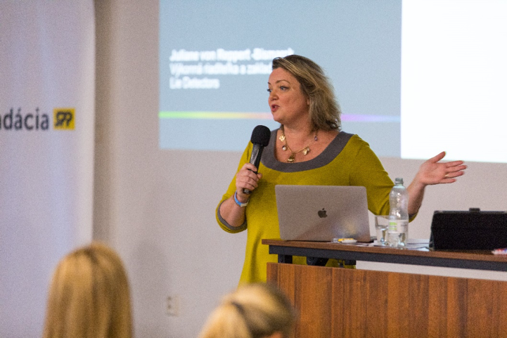 Séria aktivít sa začala prednáškou Juliane von Reppert-Bismarck o riešeniach v boji proti dezinformáciam v triede. Prezentované štatistiky a fakty boli doplnené reálnymi odporúčaniami Európskej komisie pre učiteľov.